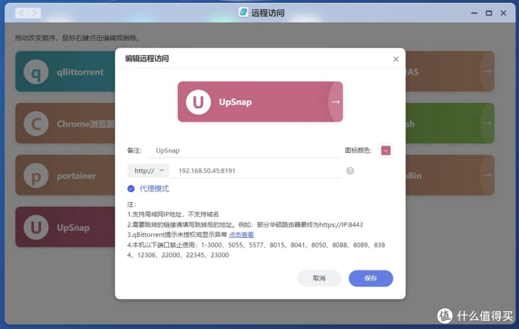 🔺想要远程控制?直接在极空间的远程访问添加UpSnap即可,记得需要勾选“代理模式”哦~